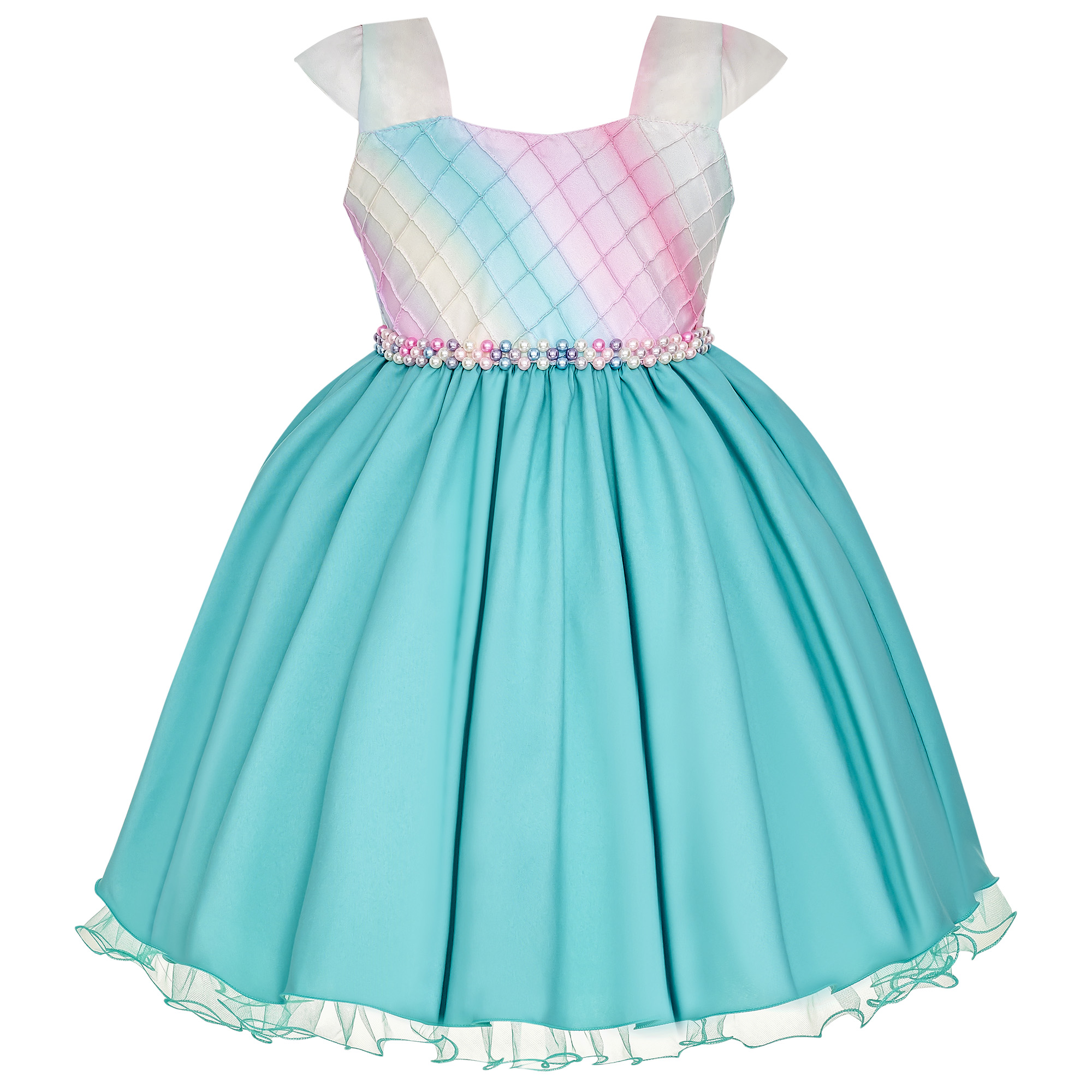 O vestido é longo? Não, geralmente fica pouco abaixo do joelho.