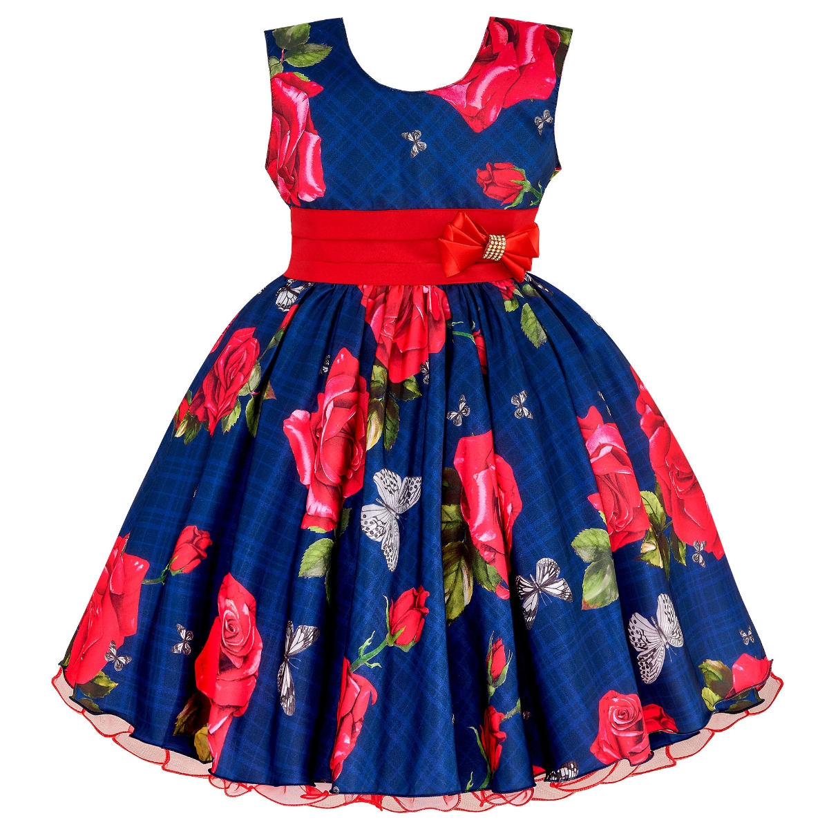 Vestido Infantil Juvenil Marinho Floral Vermelho de Festa Giovanella